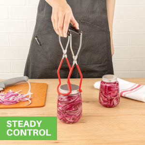 This jarring tong features a no slip design that keeps jars securely in place, avoiding accidental drops and spills. Canning with confidence has never been easier.