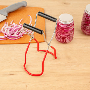 This canning jar lifter's vinyl-coated clamps ensure a secure hold on mason jars, making it a breeze. Easily manage your canning process!