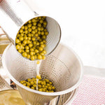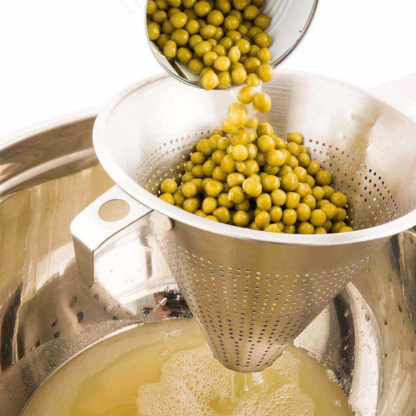- Perforated cone-shaped basin facilitates quicker straining of liquids