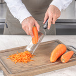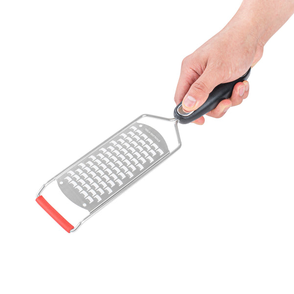 - Plastic handle provides a comfortable grip while grating