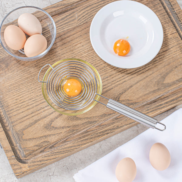- Spiral design catches egg yolks while allowing egg whites to effortlessly fall through