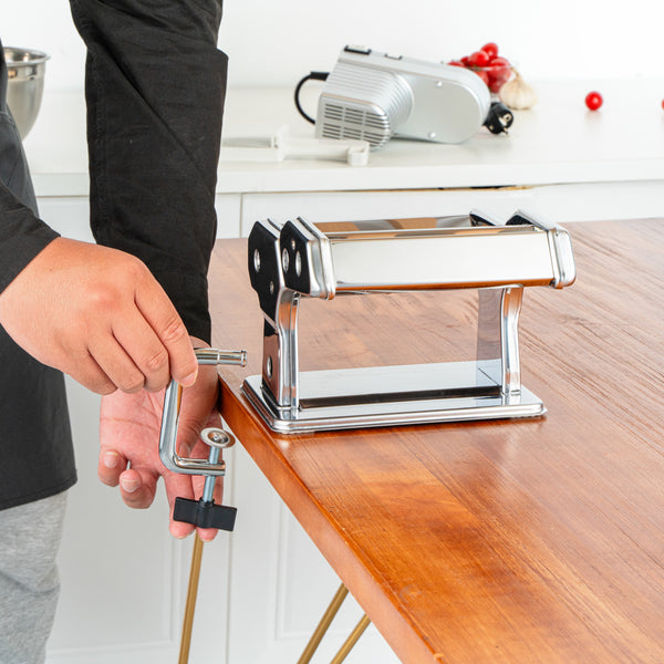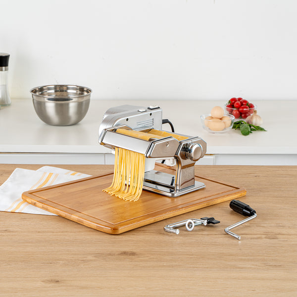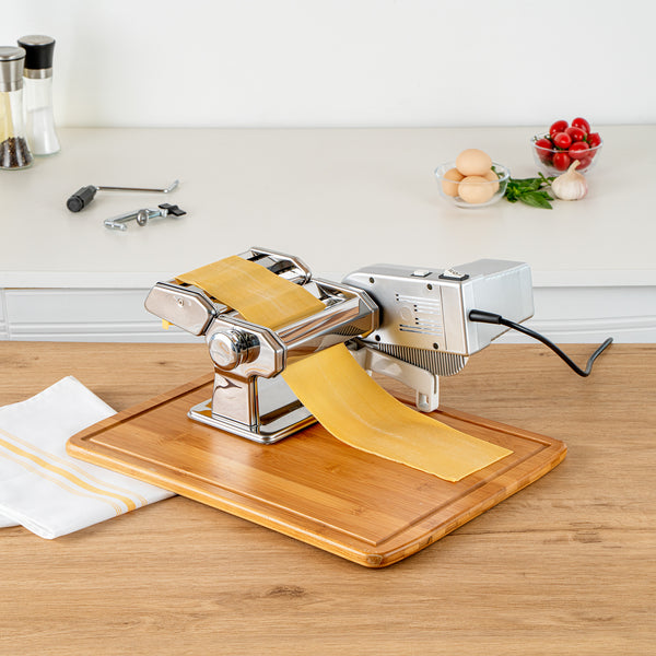 - Electric motor ensures uniform pasta thickness, reduces effort