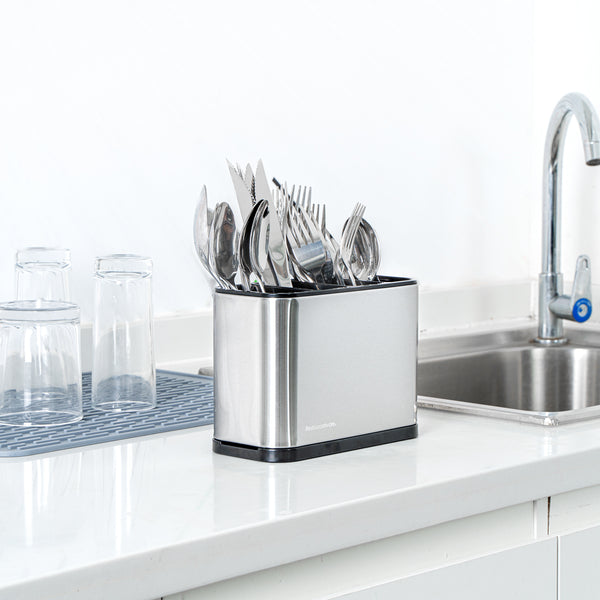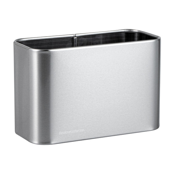 Maximize kitchen efficiency with a compact organization solution. The Met Lux Compartmentalized Stainless Steel Utensil Holder features a 4-compartment design that keeps utensils organized and easily accessible, streamlining cutlery storage in bustling kitchen environments. Crafted from stainless steel, this utensil holder ensures durability and resists corrosion, making it ideal for long-lasting use. Its built-in drip tray efficiently collects excess water, keeping countertops dry and reducing cleanup time, while the integrated drain hole allows for faster drying of utensils. With dimensions of 7 inches in length, 3.3 inches in width, and 5 inches in height, it conveniently fits into limited spaces, functioning seamlessly as a sink caddy for sponges and cleaning tools. Elevate your kitchen's organization and hygiene with this versatile stainless steel utensil holder. Each order includes 1 Met Lux Compartmentalized Stainless Steel Utensil Holder.