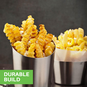These french fry containers are perfect for serving smaller or medium-sized portions. Plus, these containers not only stop under or over-serving but can also be used creatively to serve a variety of delicious side dishes like sautéed sugar snap peas, roasted parsnips and carrots, and more!