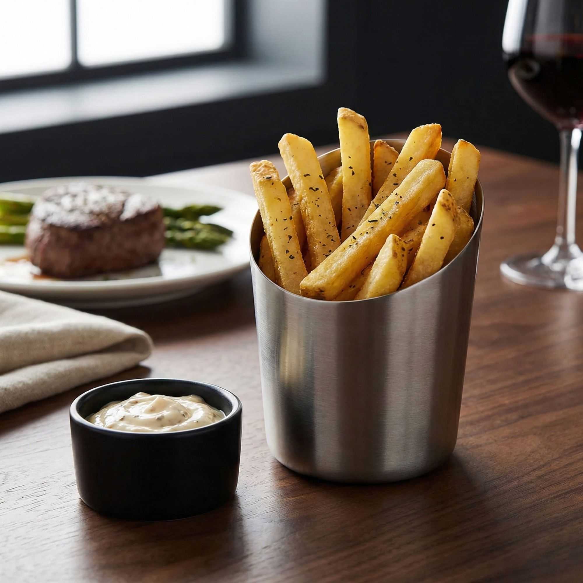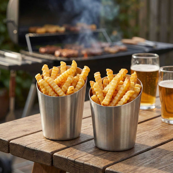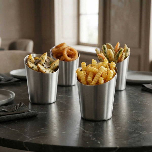STAINLESS STEEL FRENCH FRY CUP - TAPERED, SATIN FINISH
