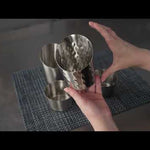 These french fry cups feature a sleek design with a satin and mirrored finish, adding a touch of elegance to your food presentation. The combination of the two finishes enhances the visual appeal of the cups, making them a stylish choice for serving fries and other delectable treats.
