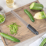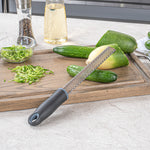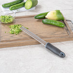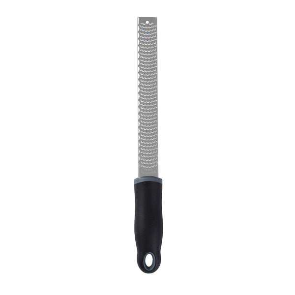 Brighten up recipes with a burst of lemon zest or finely grated nutmeg using our Met Lux Grater. Designed with a slender stainless steel blade, this zester grater makes it simple to add finely grated cheeses and herbs - or freshly zested citrus and aromatics to your recipes! This citrus zester is constructed with an easy-to-grip plastic handle to instantly improve your comfort and efficiency. Equipped with razor-sharp stainless steel grating edges, this lemon grater is perfect to pull the zest off of any citrus fruit. This zester grater measures 13 inches long and includes a protective blade safety cover. Shipped in a 1 count box.