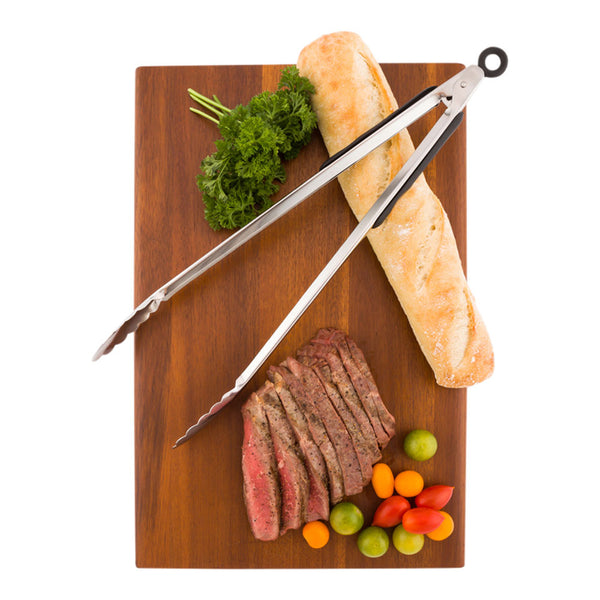 STAINLESS STEEL HEAVY-DUTY TONGS - WITH RUBBER GRIP