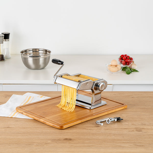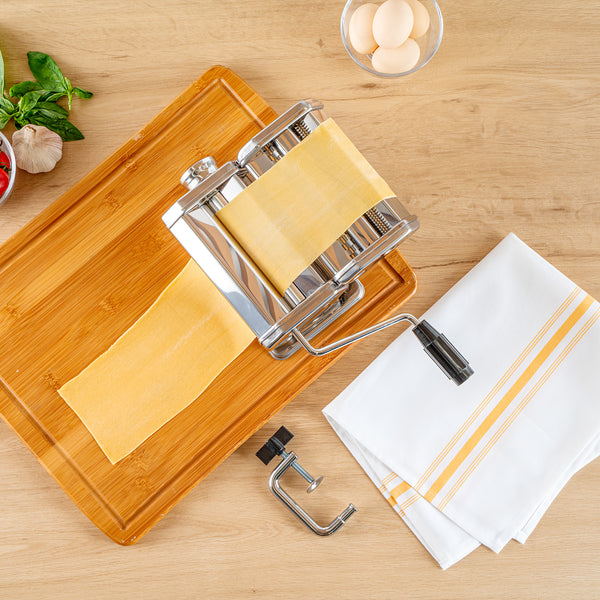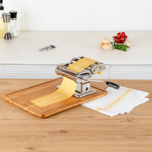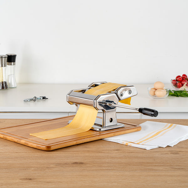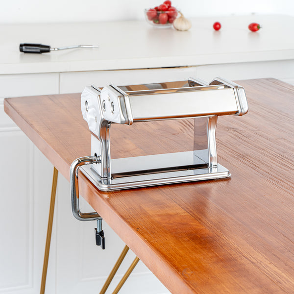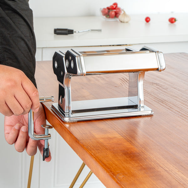 STAINLESS STEEL MANUAL PASTA MACHINE - 9 ADJUSTABLE THICKNESS SETTINGS