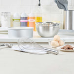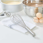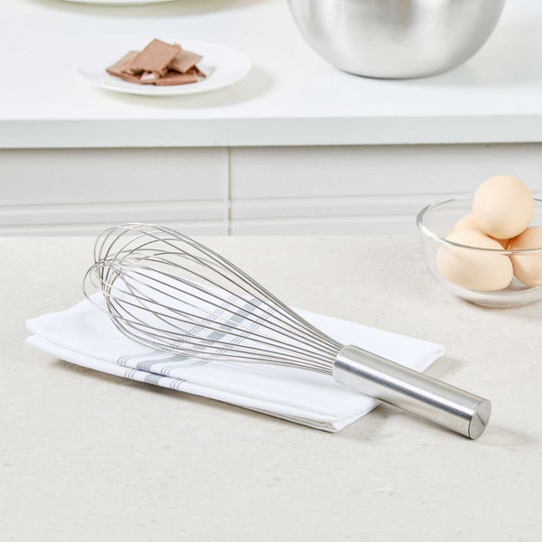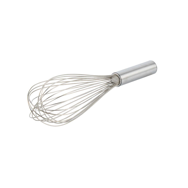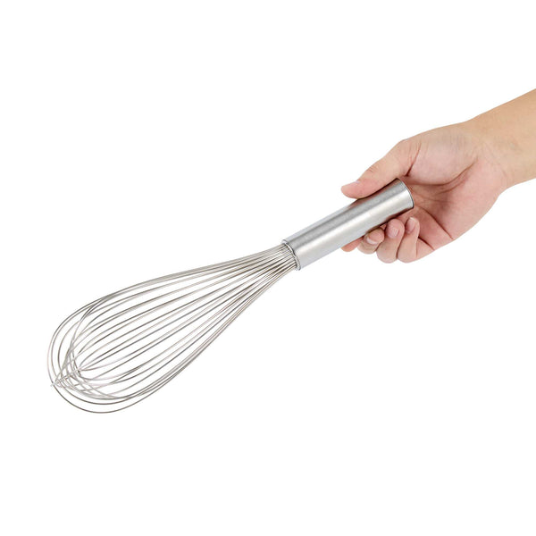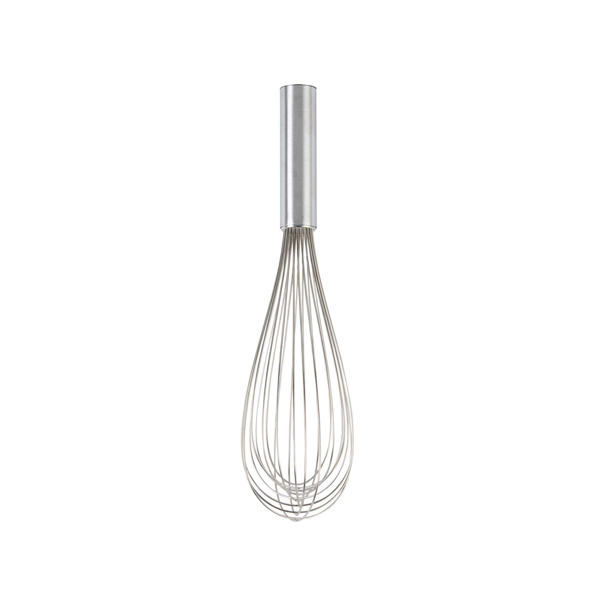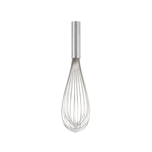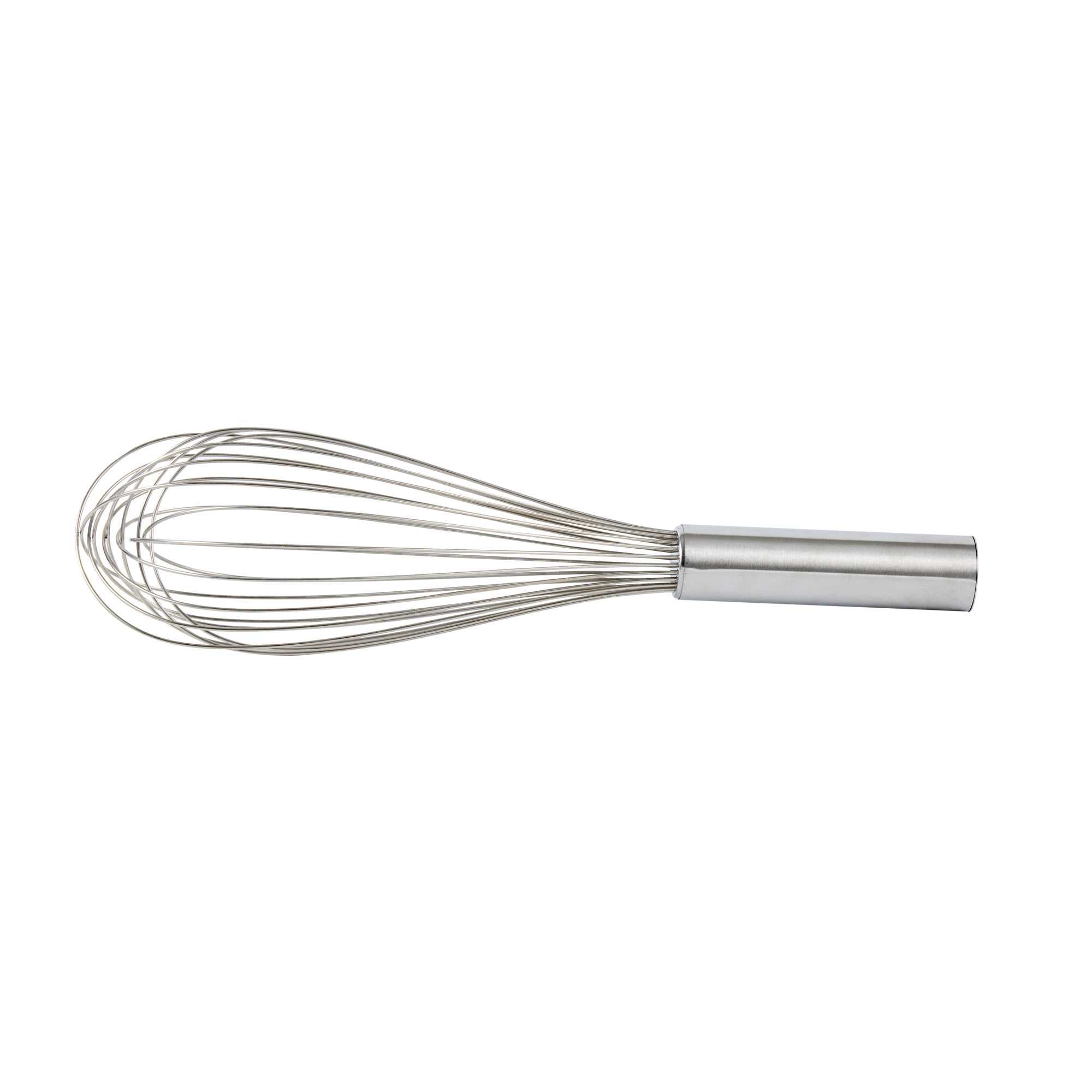 Produce lavish mixtures using our Met Lux Stainless Steel Piano Whisk. Crafted from high-quality stainless steel, this hand whisk is durable and long-lasting, by avoiding the risk of rust. The design of this stainless steel whisk incorporates thin wires that ensure thorough mixing without overworking the ingredients. This baking whisk has an ergonomic handle, reducing user fatigue and fostering a smooth and efficient kitchen experience. Being dishwasher-safe, this balloon whisk further eases your cooking routine by speeding up the cleaning process. This cooking whisk measures 12 inches long by 2.5 inches wide by 2.5 inches tall. Sold in a 1 count box.