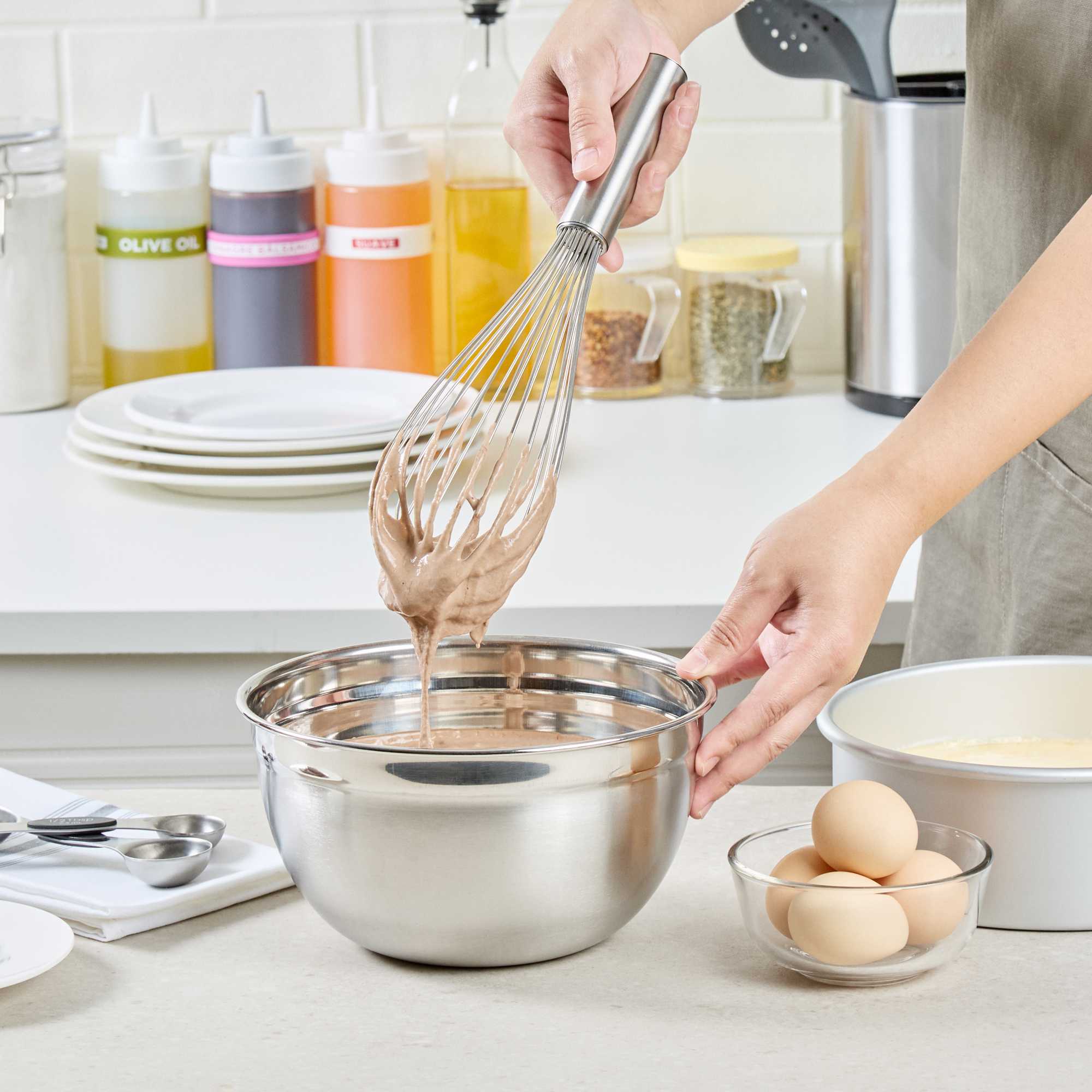 - Thin wires efficiently incorporate air into mixtures for fluffy batters