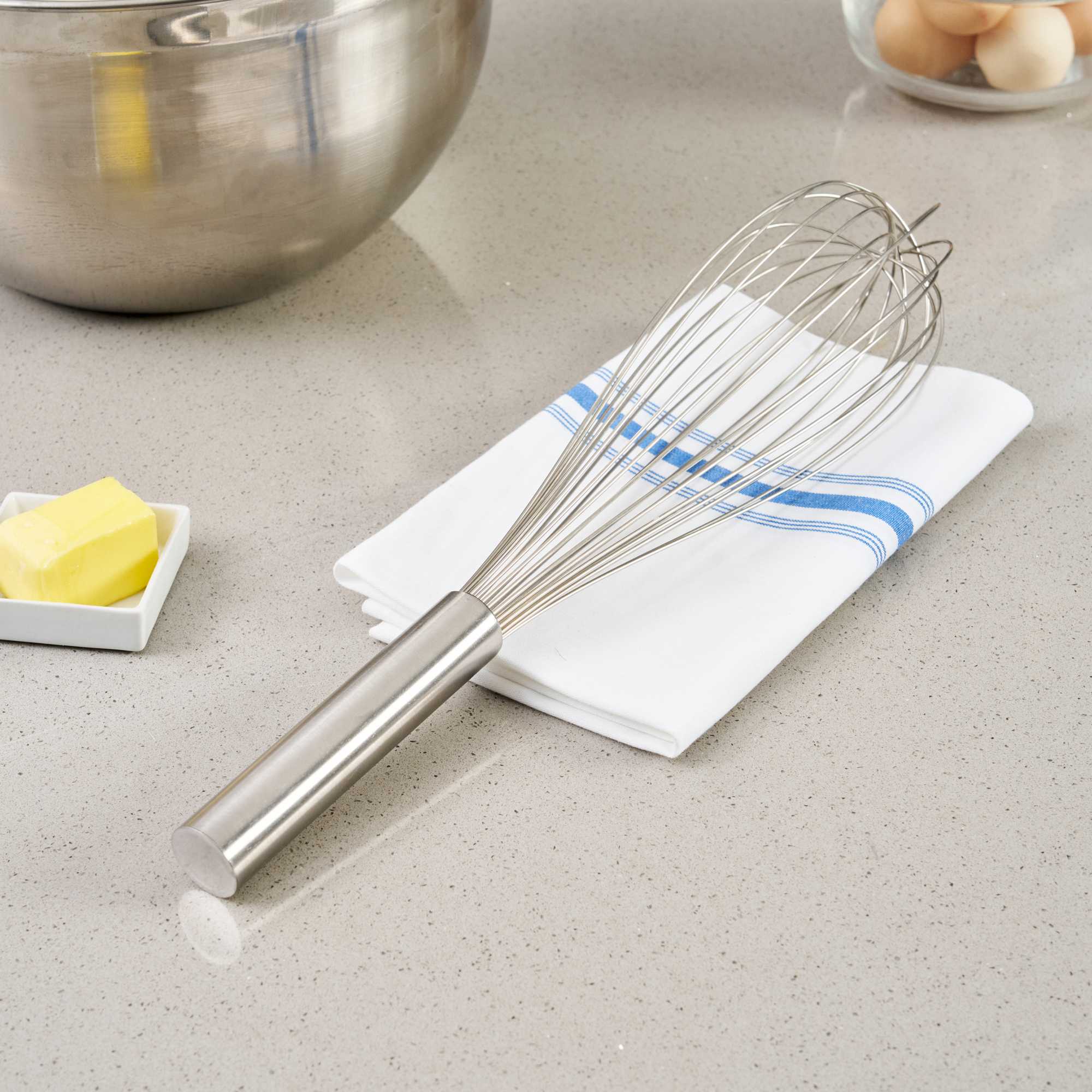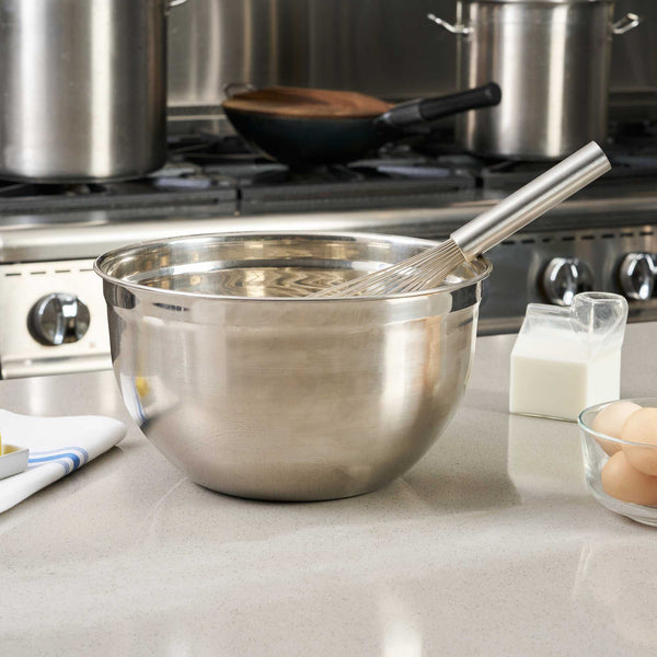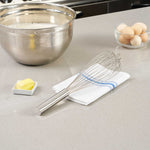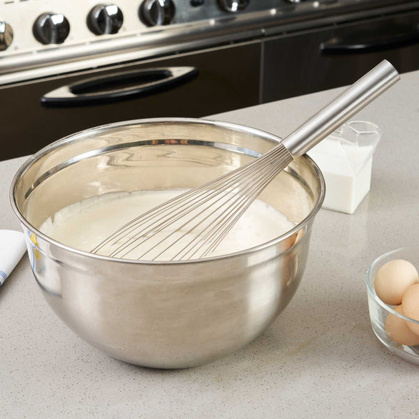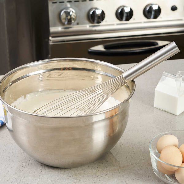 Conjure up exquisite blends with our Met Lux Stainless Steel Piano Whisk. Manufactured using superior grade stainless steel, this hand whisk is durable for long-lasting use, by eliminating the chances of rusting over time. With thin wires integrated into its design, this stainless steel whisk assures seamless blending without over-exerting your ingredients. This baking whisk features an ergonomic handle, diminishing the strain on the user and promoting efficiency in the kitchen. As a dishwasher-safe tool, this cooking whisk simplifies your culinary operations by making clean-up hassle-free. This balloon whisk measures 16 inches long by 3 inches wide by 3 inches tall. Shipped in a 1 count box.