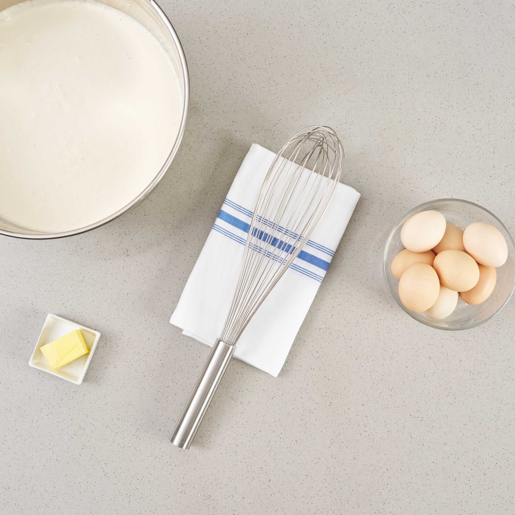 - Thin wires efficiently incorporate air into mixtures for fluffy batters