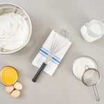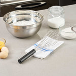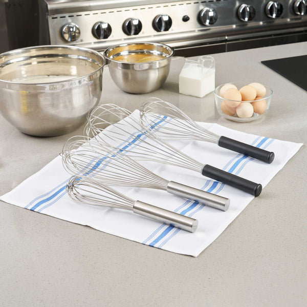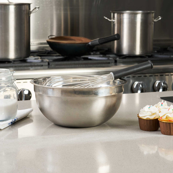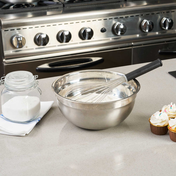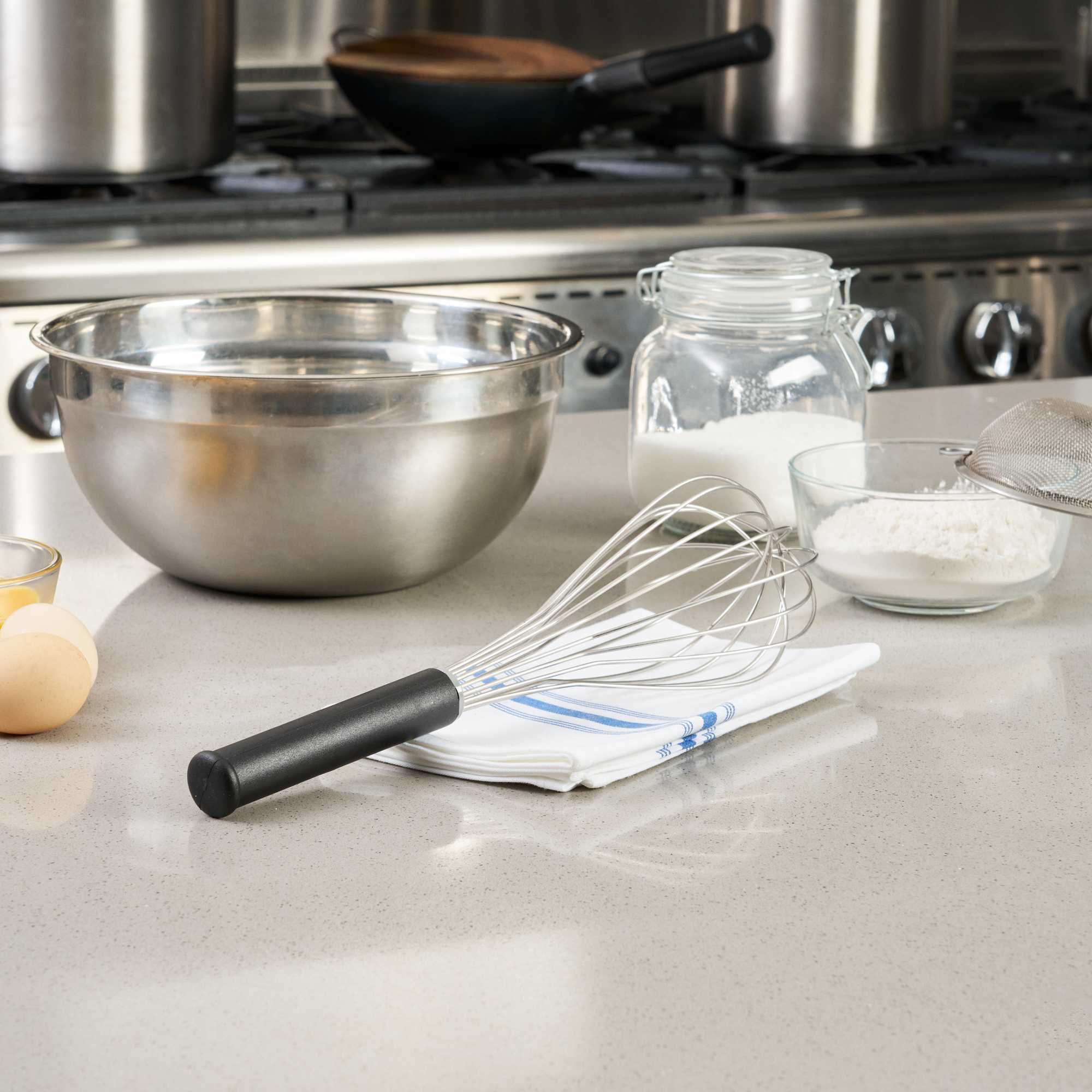 Create sophisticated blends with our Met Lux Stainless Steel Piano Whisk. This hand whisk is shaped from premium-grade stainless steel, offering prolonged durability and rust resistance. Designed with sleek wires, this stainless steel whisk ensures the production of well-blended ingredients without putting too much force on them. Equipped with an ergonomic plastic handle, this baking whisk reduces user fatigue, contributing to a streamlined and effective kitchen routine. This balloon whisk is dishwasher-safe for a straightforward cleanup. Measuring 14 inches long by 3.75 inches wide by 3.75 inches tall, this cooking whisk is ideal for creating smooth batters. Sold in a 1 count box.