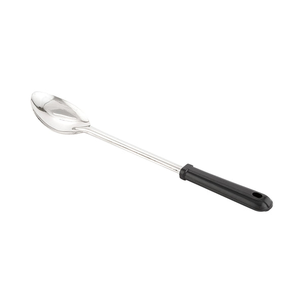 STAINLESS STEEL SERVING SPOON - SOLID, WITH BLACK PLASTIC HANDLE