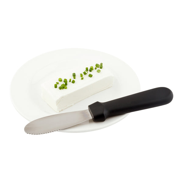 Easily slather on condiments with our Met Lux Stainless Steel Spreader with Plastic Handle. Constructed from high-quality stainless steel, this butter spreader knife features a dual-sided blade for quick and efficient use. Its built-in serrated edge enables easy cutting, while its smooth-sided edge ensures effortless spreading! Use this stainless steel butter spreader to spread butter or jam on toast, or to evenly apply condiments or toppings to sandwiches. Equipped with an easy-to-grip plastic handle, this spreader knife ensures high performance in fast-paced environments. Each of these sandwich spreaders measures 8.75 inches in total length, including a 4 inch blade. Shipped in a 1 count box.