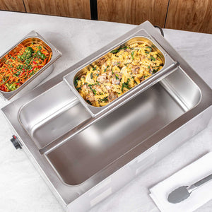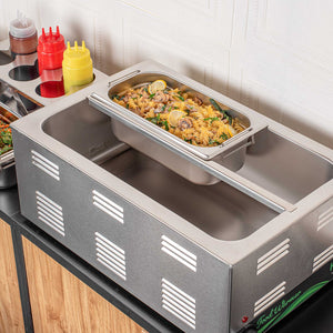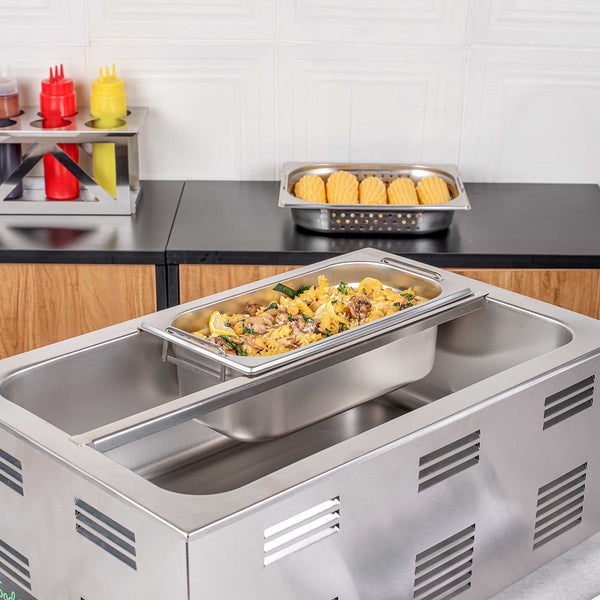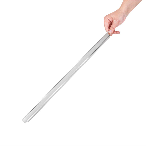 Built from impact-resistant stainless steel, this steam table divider bar forms the perfect fit to accommodate differently sized pans and hold them securely in place. This impact-resistant steam table adapter bar makes it easy to divide your existing steam table to fit all sizes of steam table pans. Designed with a classic stainless steel finish, this steam table adapter bar adds a professional touch to restaurants, cafeterias, food trucks, bakeries, and other food service establishments. This hotel pan adapter measures 20.5 inches long and is perfect for organizing steam tables, kitchen prep areas, salad bars, frozen yogurt topping bars, and more. Pair this stainless steel adapter bar with our Met Lux steam table pans and steam table pan lids to complete the look! Sold in a 1 count box.