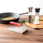 STAINLESS STEEL STEAK WEIGHT - WITH SILICONE HANDLE