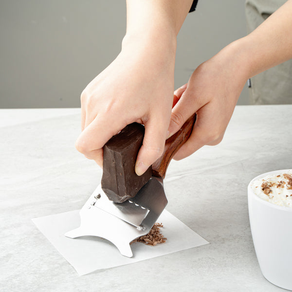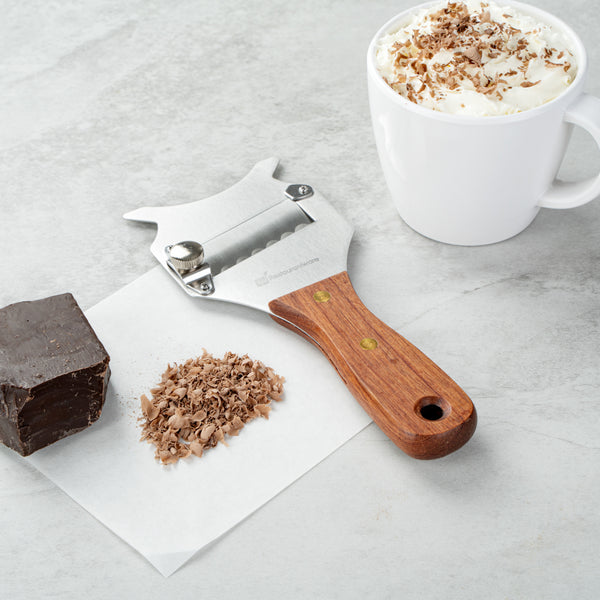- Chocolate shaver peels off flakes from chocolate bars to use as garnishes