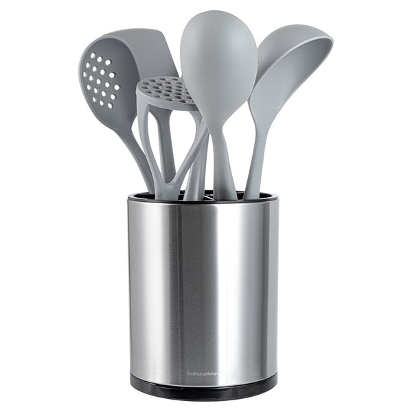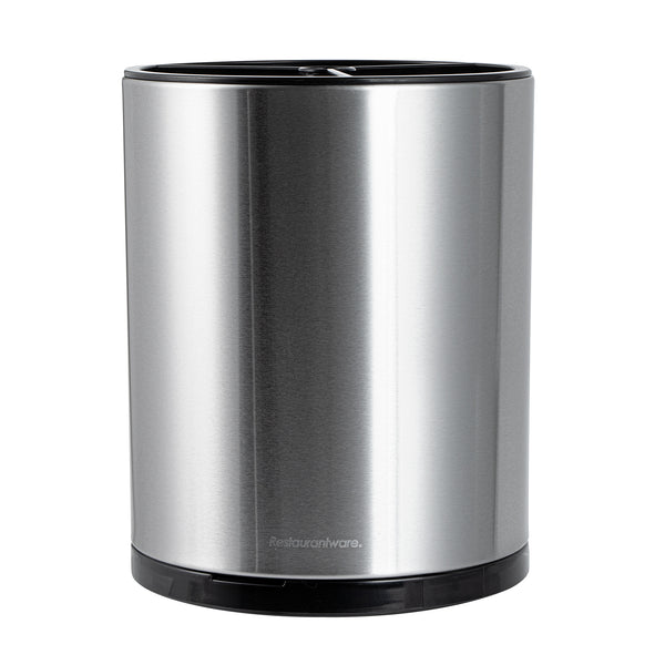 Maximize kitchen efficiency with a rotating utensil organizer. The Met Lux Stainless Steel Rotating Utensil Organizer offers a rotating design that ensures easy access to utensils from all angles, enhancing workflow in bustling kitchen environments. Its 3-compartment design keeps utensils organized and easily accessible, making it an indispensable kitchen utensil caddy for chefs who need to streamline operations. An integrated drip tray efficiently collects excess water, keeping countertops dry, while a built-in drain hole ensures quicker drying of utensils. Made from stainless steel, this utensil holder is not only durable but also resistant to corrosion. Its compact dimensions of 6.2 inches by 6.2 inches by 7.9 inches allow it to fit comfortably on countertops without taking up excessive space, ideal for kitchens with limited area. Enhance your kitchen’s functionality with this stainless steel utensil holder. Each order includes 1 Met Lux Stainless Steel Rotating Utensil Organizer.