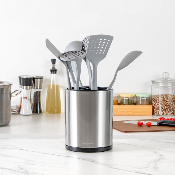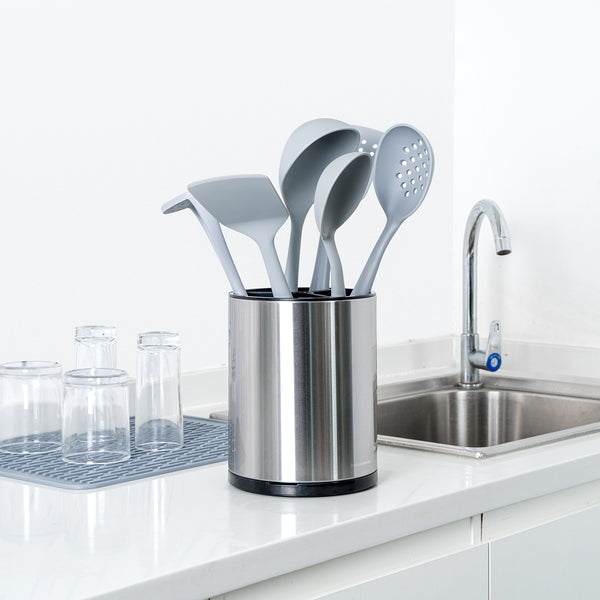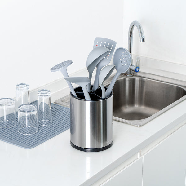 STAINLESS STEEL UTENSIL HOLDER - 3 COMPARTMENTS, ROTATING