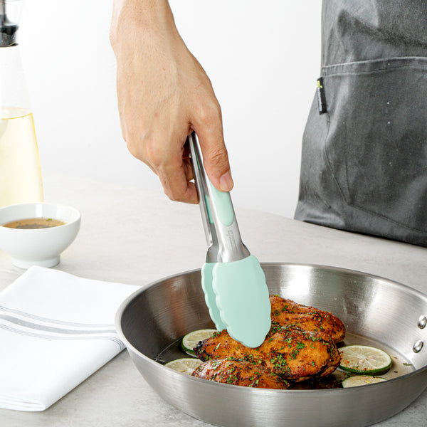 These professional chef tongs are available in two sizes and an array of appealing colors to match individual kitchen aesthetics. Also available as a set of two.