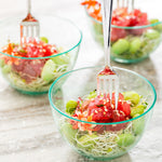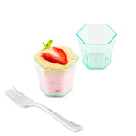 100 2 OZ HEXAGON SEAGREEN PLASTIC GLASS AND 100 MINI FORKS