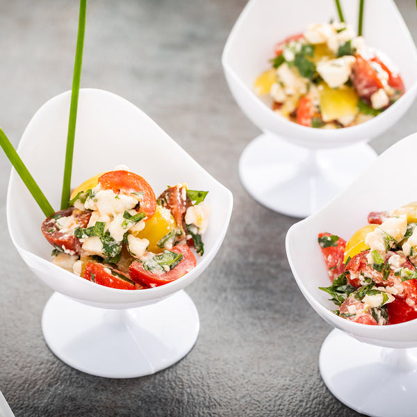 Elevate your appetizer presentation with our Bundle: Mini Serve 100 2-ounce Round White Plastic Ball Chairs with 100 Silver Plastic 4-inch Mini Spoons, offering a stylish and convenient solution for serving bite-sized delicacies. This bundle includes round white plastic ball chairs and silver plastic mini spoons, designed to complement each other seamlessly. The distinctive open-top structure and heightened pedestal base of these plastic cups instantly add a charming touch to your served food. These appetizer cups have a white finish and instantly add a contemporary chic vibe to your fare. With a shiny silver finish, these plastic spoons effortlessly enhance the presentation of your tantalizing dishes. These 4-inch spoons have sturdy handles and can withstand hefty bites of polenta and big scoops of gelato. Designed for convenience, these disposable cups and spoons can be discarded after use for an easy cleanup. These white plastic cups measure 2.75 inches in diameter by 2.75 inches in height and securely hold 2 ounces. Each order includes 100 cups and 100 spoons