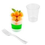 100 3 OZ CLEAR PLASTIC MINI PARFAIT GLASS AND 100 MINI FORKS