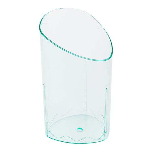 Design elegant serving stations with our Bundle: Mini Serve 100 3-ounce Seagreen Plastic Triangolo Shot Glass with 100 Silver Plastic 4-inch Mini Spoons. This bundle includes our 3-ounce seagreen plastic triangolo shot glasses, crafted from durable plastic to withstand lively gatherings and lengthy celebrations, and our silver plastic mini spoons, featuring a shiny silver finish to enhance the presentation of your tantalizing dishes. The distinctive triangular form of these shot glasses imparts an instant sense of sophistication to your beverages, while their charming seagreen hue showcases vivid creations. These disposable shot glasses streamline post-event cleanup, allowing you to relish the occasion alongside your guests. These stackable shot glasses save storage space and effort, while their chic appearance and 3-ounce capacity ensure perfect pourings. Complementing the shot glasses, these 4-inch silver plastic spoons are ideal for plating miniature appetizers like tuna tartare or personal-sized desserts, with sturdy handles that can handle hefty bites of polenta or scoops of gelato. With dimensions of 1.75 inches in diameter by 3 inches in height for the shot glasses and 4 inches in length for the spoons, this bundle offers the perfect combination for elevating your events. Each order includes 100 shot glasses and 100 mini spoons.