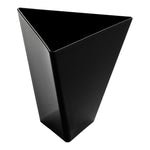 Elevate your appetizer and dessert presentations with our Bundle: Mini Serve 100 4-ounce Black Plastic Torcente Dessert Cups with 100 Silver Plastic 4-inch Mini Spoons, offering a stylish and convenient solution for serving bite-sized treats. This bundle includes dessert cups and plastic spoons, providing you with the perfect pairing for a seamless serving experience. Crafted from durable plastic, these appetizer cups and spoons do not crack or warp easily. With a unique triangular shape, these plastic cups bring a contemporary and elegant touch to your bite-sized treats. The black finish of these disposable cups adds sophistication to your food presentation. Featuring a shiny finish, these 4-inch spoons are designed to effortlessly enhance the presentation of your tantalizing dishes. The sturdy handles of these mini spoons can handle hefty bites of polenta or big scoops of gelato. These cups and spoons are conveniently disposable, allowing for easy after-service cleanup. Measuring 3 inches in length by 2.5 inches in width by 2.75 inches in height, these black plastic cups can hold up to 4 ounces. Each order includes 100 cups and 100 spoons.