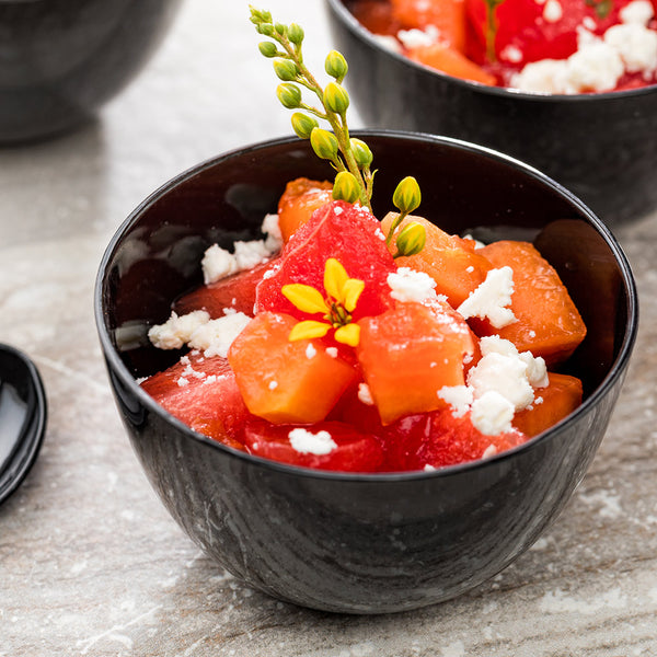 Elevate your culinary presentations with our Bundle: Mini Serve 100 4-ounce Round Black Plastic Bodega Cups with 100 Plastic 4-inch Spoons. This bundle comprises round black plastic bodega cups and silver plastic mini spoons, perfect for enhancing your appetizer and dessert displays. These appetizer cups and spoons are crafted from premium plastic and are durable, ensuring they do not crack or warp easily. The black finish of these plastic cups offers a sleek and sophisticated look, perfect for modern or elegant table settings. These plastic spoons have a shiny silver finish and effortlessly elevate the presentation of your tantalizing dishes. The sturdy handles of these 4-inch spoons can withstand hefty bites of polenta and gelato. These dessert cups and spoons are disposable and can be discarded after use for a simple cleanup. Measuring 3 inches in diameter and 1.75 inches in height these disposable cups can hold up to 4 ounces. Each order includes 100 cups and 100 spoons.