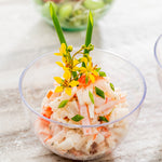 Elevate your party presentations with our Bundle: Mini Serve 100 4-ounce Round Clear Plastic Bodega Cups with 100 Plastic 4-inch Spoons. This bundle includes round clear plastic bodega cups and silver plastic mini spoons, providing all the essentials for an elevated serving experience. Crafted from premium plastic, these clear bodega cups assure continuous robustness and efficiency. The crystal-clear finish of these dessert cups heightens your table decor and complements any ambiance perfectly. Ideal for portioning small servings or appetizers, these disposable plastic snack cups simplify post-party cleanup chores. The compact, stackable design ensures convenient storage. Featuring a shiny silver finish, the included 4-inch mini spoons effortlessly enhance the presentation of your tantalizing dishes, making them the ideal accompaniment for miniature tuna tartare, personal-sized strawberry shortcakes, or hearty bites of polenta and gelato scoops. These 4-ounce cups measure 3 inches in diameter and 1.75 inches in height. Each order includes 100 cups and 100 spoons.