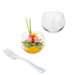 100 4 OZ SPHERE CLEAR PLASTIC CUPS AND 100 MINI FORKS