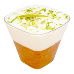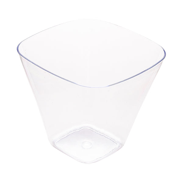 Elevate your culinary presentations with our Bundle: Mini Serve 100 4-ounce Square Clear Plastic Bellissima Tasting Cups with 100 Silver Plastic 4-inch Mini Spoons. This bundle includes dessert cups and spoons that offer a comprehensive dining experience. Made from strong and sturdy plastic, these disposable cups and spoons do not crack or warp easily. The clear finish of these appetizer cups showcase your vibrant ingredients, perfect for serving miniature portions of citrus-marinated snapper ceviche or decadent red velvet cake bites. These 4-inch spoons have a shiny silver finish and effortlessly enhance the presentation of your tantalizing dishes, whether it's miniature tuna tartare or personal-sized strawberry shortcakes. With sturdy handles, these plastic spoons are built to stand up to hefty bites and big scoops. These plastic cups measure 2.5 inches in length, 2.5 inches in width by 2.2 inches in height, and can hold up to 4 ounces. Each order includes 100 cups and 100 spoons.