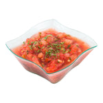 Dazzle your guests with an elegant table setting using our Mini Serve 6-ounce Square Seagreen Plastic Aqua Bowls with Silver Plastic Mini Forks. These square bowls and cake forks are crafted from premium plastic and are conveniently disposable to offer a quick cleanup after large social events. Featuring a unique curved square design, these salad bowls bring an memorable pop of color to any cocktail party, banquet, or catered event with their lovely seagreen tint. Complementing the seagreen bowls are these mini forks with a shiny silver finish that will effortlessly enhance your tantalizing dishes. Each 4-inch fork have sturdy handles that are built to stand up to hearty bites of any appetizer. These disposable containers measure 3.25 inches long by 3.25 inches wide by 1.5 inches tall and have a capacity of 6 ounces, while the plastic forks measure 4 inches long. Each order includes 100 bowls and 100 forks.