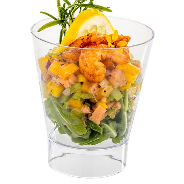 Elevate your culinary presentations with our Bundle: Mini Serve 100 7-ounce Round Clear Plastic Large Parfait Glasses with 100 Silver Plastic 4-inch Mini Spoons, offering a sophisticated and practical solution for showcasing delectable treats. This bundle includes parfait glasses and mini plastic spoons for a cohesive dining setup. Crafted from premium plastic, these appetizer cups and spoons are designed to be robust, ensuring they do not crack or warp easily. The clear finish of these plastic cups showcases layered desserts beautifully, injecting an element of sophistication into any celebration or dining experience. With a shiny silver finish, these plastic spoons effortlessly enhance the presentation of your tantalizing dishes, These 4-inch spoons have strong and sturdy handles that stand up to hefty bites of polenta and big scoops of gelato. Ideal for a quick cleaning experience, these disposable cups and spoons can be discarded after use. These dessert glasses measure 3 inches in diameter by 3.5 inches in height and can hold up to 7 ounces. Each order includes 100 glasses and 100 spoons.