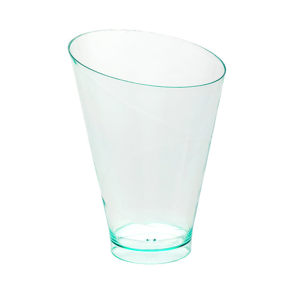Elevate your dessert presentations with our Bundle: Mini Serve 100 7-ounce Round Seagreen Plastic Incline Glasses with 100 Silver Plastic 4-inch Mini Spoons for an effortlessly stylish setup. This bundle includes plastic incline glasses and plastic mini spoons, offering a cohesive and visually striking combination. The modern incline shape of these plastic cups showcases your luscious layered creations like vanilla bean panna cotta in a temptingly portable manner. Crafted from premium plastic, these appetizer cups and spoons are durable, ensuring they do not break or warp easily for reliable use. The seagreen finish of these dessert cups adds a pop of color to your table setting and elevates the presentation. With a shiny silver finish, these plastic spoons effortlessly enhance the presentation of tantalizing appetizers like miniature tuna tartare or personal-sized strawberry shortcakes. These 4-inch spoons have study handles and can withstand hefty bites of polenta and gelato. For an easy cleanup, these disposable cups and spoons can be discarded after use. Measuring 3 inches in diameter by 4 inches in height, these plastic glasses can hold up to 7 ounces. Each order includes 100 glasses and 100 spoons.