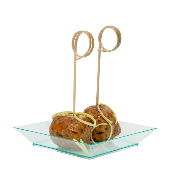 Add style to your next event with our Bundle: Mini Serve 100 Square Seagreen 3.9-inch Plastic Small Modern Plates with 100 Silver Plastic 4-inch Mini Spoons. This bundle includes our premium plastic seagreen square plates and sleek silver mini spoons, both crafted from premium plastic. Featuring a unique seagreen hue and raised edges, these plates beautifully frame your culinary creations while averting messes, ensuring a polished and contained display. With their durable structure, these seagreen plates can withstand even the heartiest of appetizers without compromising their structural integrity. Conveniently stackable, these modern plates maximize your storage space, making them ideal for commercial kitchens and catering services. Complementing the plates are these shiny silver mini spoons, designed to effortlessly enhance the presentation of your tantalizing dishes, from miniature tuna tartare to personal-sized strawberry shortcakes. With sturdy handles that can scoop up hefty bites of polenta or gelato, these 4-inch spoons are the perfect size for your bite-sized offerings. Measuring 3.9 inches in length by 3.9 inches in width, these plates offer ample space for your creations, while each spoon measures 4 inches in length. Each order includes 100 plastic plates and 100 mini spoons.