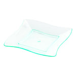 Transform your event setup with our Bundle: Mini Serve Square Seagreen Plastic Aqua Plates and Silver Plastic Mini Spoons, perfect for adding an elegant touch to any occasion. This bundle features 100 expertly crafted square seagreen plates and sleek silver mini spoons, made from premium materials to ensure both sturdiness and a stylish presentation. The modern square design and asymmetrical depth of the plates securely contain small food items while adding a modern flair to your food display. The seagreen finish sets the stage for vibrant presentations, while the silver mini spoons elevate the look of your delectable appetizers or desserts. Both the plates and spoons in this bundle are recyclable to help reduce cleanup after gatherings. The 1-ounce plates measure 3 inches long and wide, and are ideal for desserts or appetizers, while the 4-inch spoons have sturdy handles to handle delicate treats. Each order includes 100 plastic plates and 100 mini spoons.