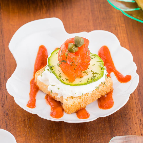 Upgrade your event experience with our Mini Serve unique White Plastic Shell Plates with Silver Plastic Mini Forks. Featuring a shell-inspired design with a clean white finish, these serving plates infuse a serene elegance into any dining set up, making it ideal for chic celebrations or refreshing spring affairs. These white plastic plates and tasting forks are crafted from PS plastic and are disposable, rendering an easy post-meal cleanup solution. Each appetizer dish has a built-in handle with a slightly dipped center that paves the way for an artistic display of sauces or garnishes. The included silver plastic forks create a harmonious, bright ambiance for any fresh or breezy-themed event. These disposable measure 3.25 inches in length by 3.25 inches in width, and the included single-use forks measure 4 inches in length. Each order includes 100 plates and 100 forks.