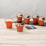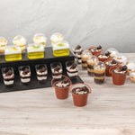 Provide a perfect addition to your dessert service with our Mini Serve 2-ounce Round Brown Plastic Dessert Bucket Cups. Designed with a unique bucket shape, these recyclable plastic dessert cups give a fun and innovative presentation to your sweet treats. Crafted from BPA-free PP plastic, these microwavable bucket dessert cups are built to withstand both hot and cold foods, allowing you to serve a variety of desserts to your customers. These disposable dessert cups have a brown finish that adds a stylish touch to your dessert offerings, enhancing the overall dining experience. The stackable design of these plastic dessert glasses ensures space-saving storage in your kitchen or display case. With a capacity of 2 ounces, these bucket cups are perfect for providing your customers with just the right portion of their favorite dessert. Measuring 3 inches in diameter by 2.5 inches in height, these bucket dessert cups are perfectly sized for a single serving of deliciousness. Sold in a 100 count box.