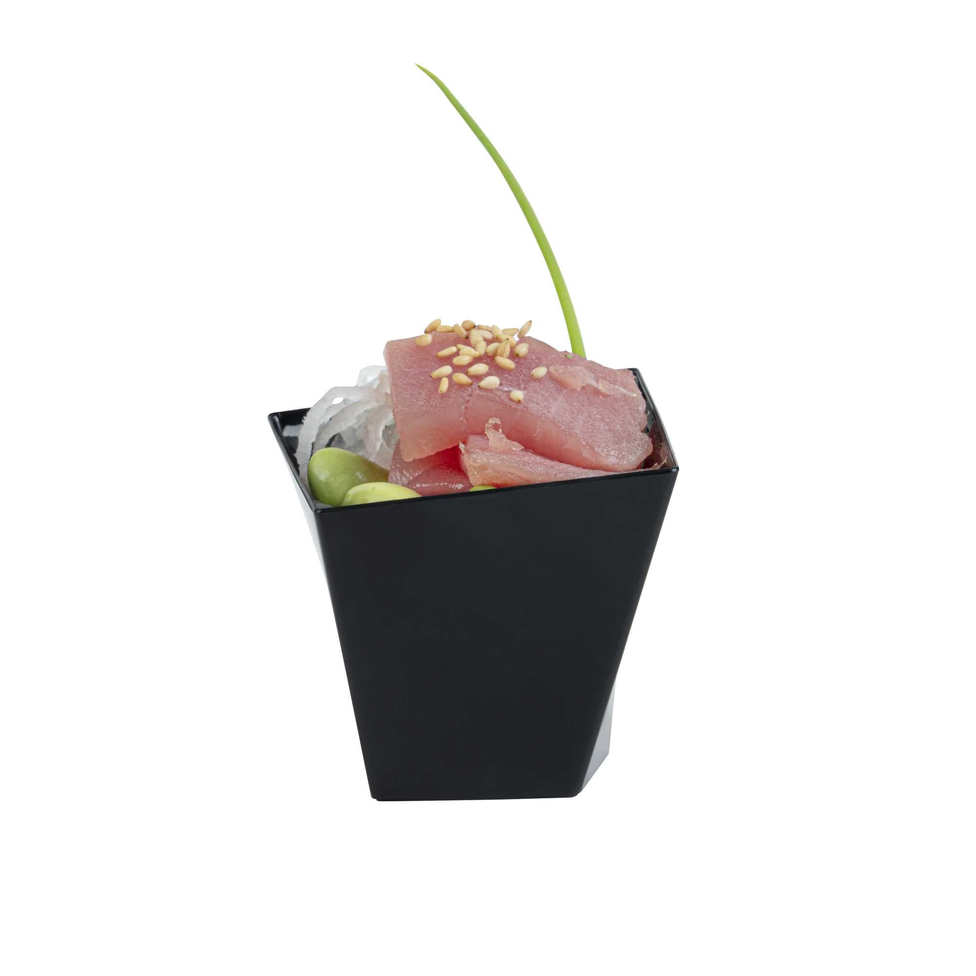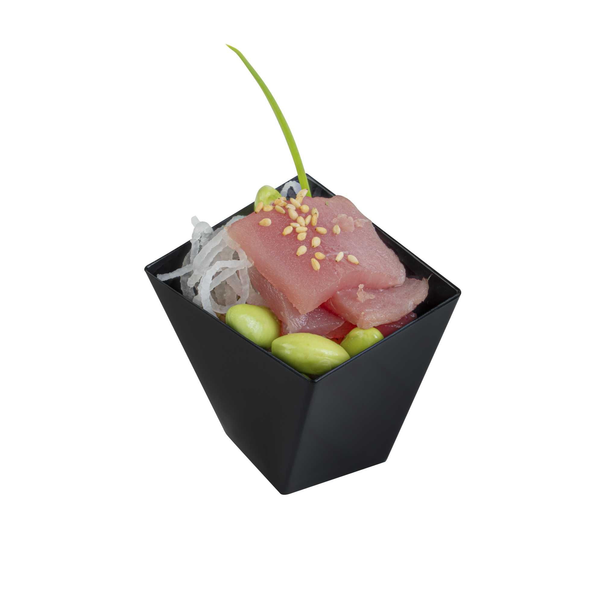 2 OZ SQUARE BLACK PLASTIC GIRATA DESSERT DISH