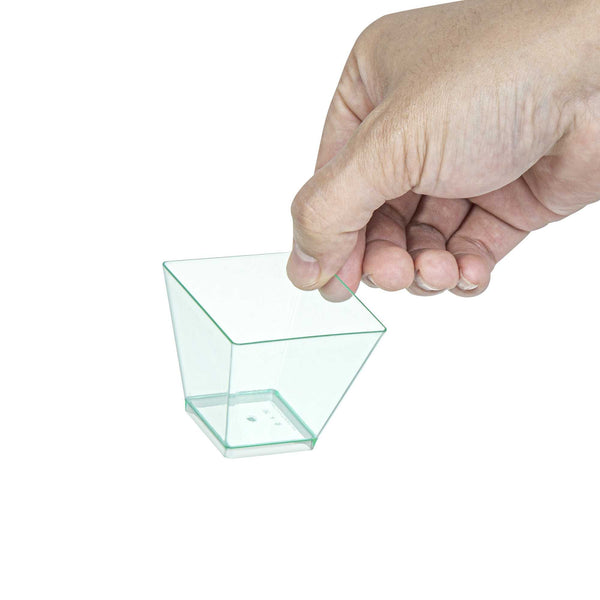Customize your presentation with our Mini Serve 2-Ounce Square Seagreen Plastic Mini Kova Cups. Durably constructed, these seagreen kova cups are built to last, ensuring your event runs smoothly. The smooth rims of these plastic mini cups make for a comfortable eating experience. The unique seagreen color of these plastic cups adds an elegant, ocean-like touch to your presentation, fitting for any occasion. Ideally designed for bite-sized appetizers, desserts, or drinks, these 2-ounce treat cups are a great addition to your menu. Designed for single-use, these disposable snack cups ensure an easy cleanup process. Pair these cups with our Mini Serve matching lids (SKU: RWP0305C) to protect the contents. Measuring inches long by 2 inches wide by 1.75 inches tall, these recyclable kova cups are efficient for storage. Sold in a 20 count box.