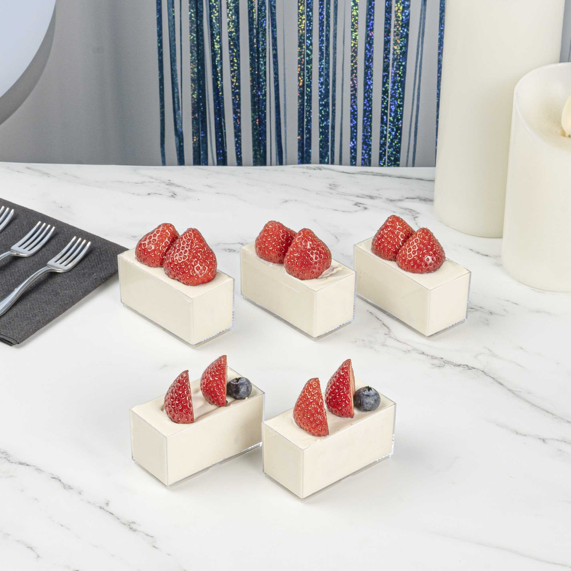 3 OZ RECTANGLE CLEAR PLASTIC DESSERT CUP - STACKABLE