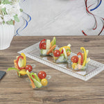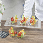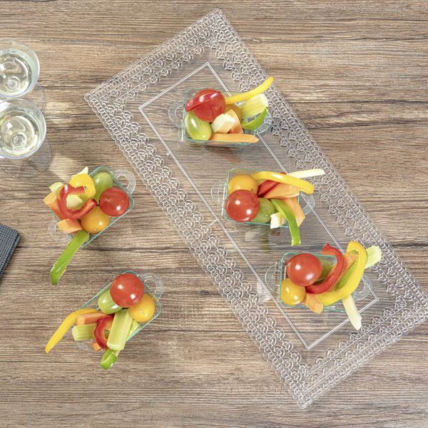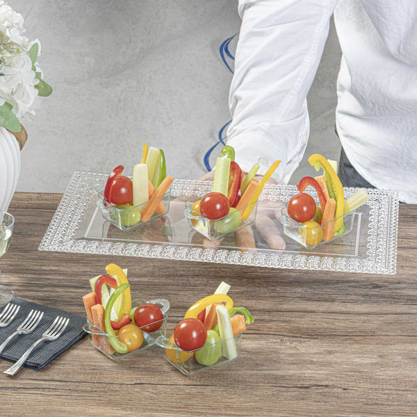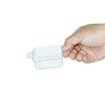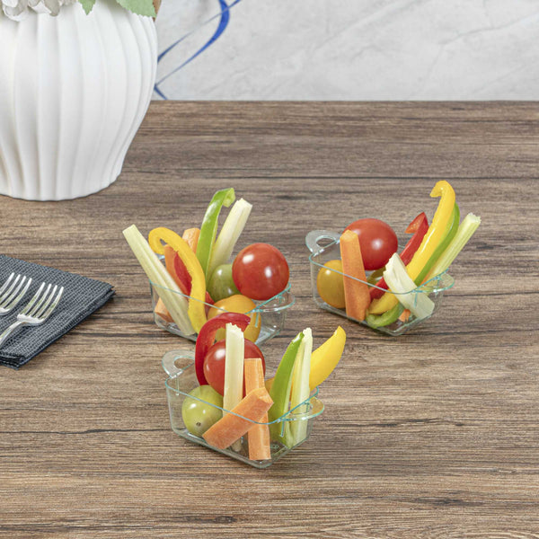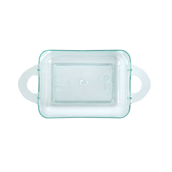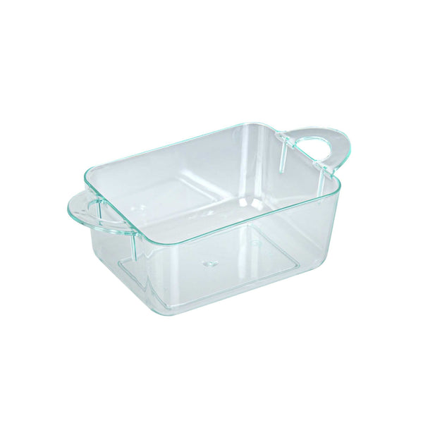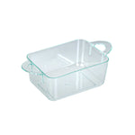 Enhance the aesthetic appeal of any restaurant, cafe, or dining location immediately with our Mini Serve 3-ounce Rectangle Seagreen Plastic Cocottes. Designed in a rectangular shape, these mini translucent pots let your patrons savor every morsel of their meal fully. Equipped with side handles, these casserole dishes make it easier for your staff to carry them from kitchen to table. The deep structure of these rectangular cocottes is ideal for serving generous portions. With their disposable nature, these pieces of plastic tableware can be easily discarded after they've been used, reducing cleanup time. The translucent seagreen finish of these deep rectangular bowls augments the beauty of your food presentation. Each disposable deep dish measures 3.75 inches in length by 2 inches in width by 1.5 inches in height and holds up to 3 ounces. Sold in a 100 count box.