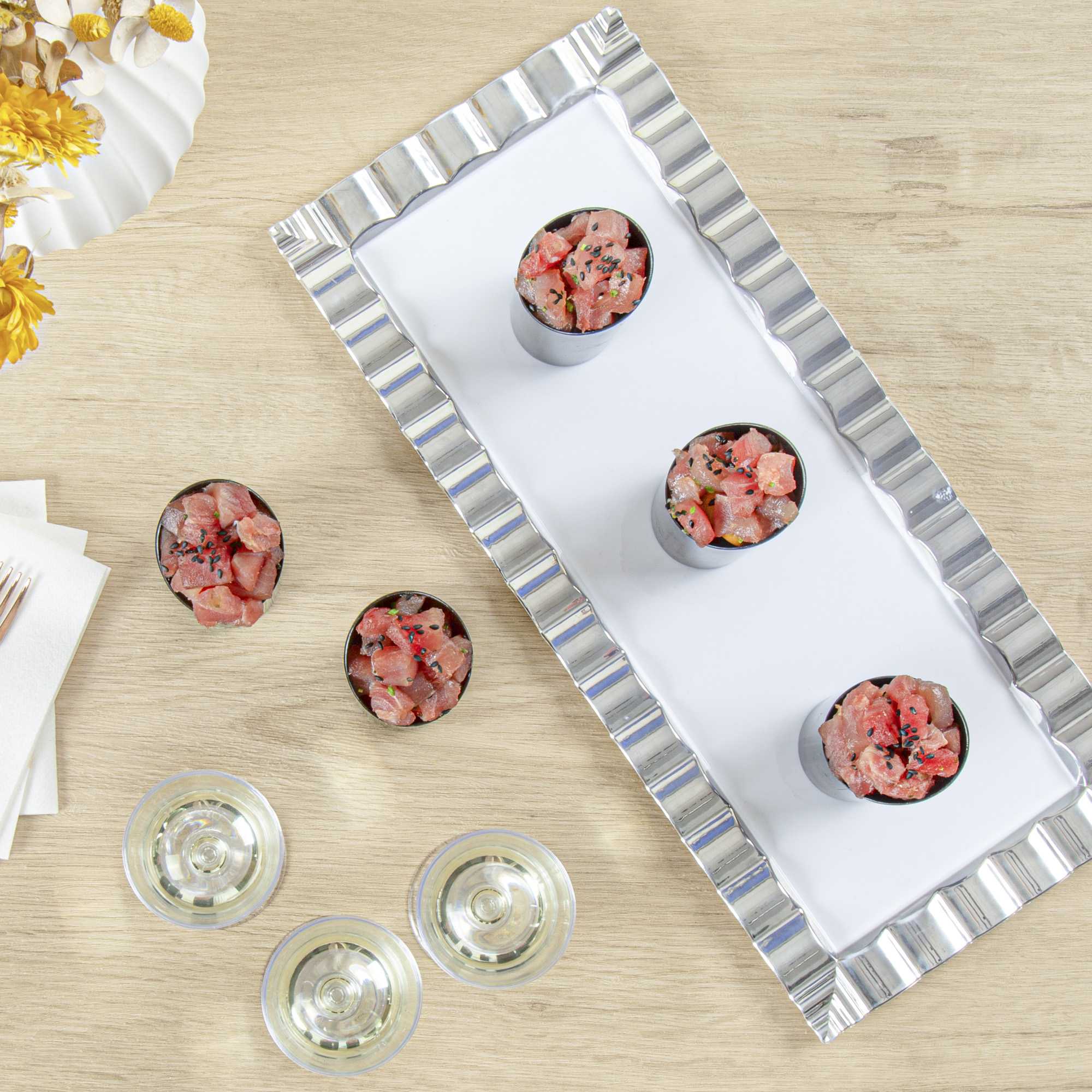 - Inclined edge beautifully showcases your desserts or cocktail shots with sophistication