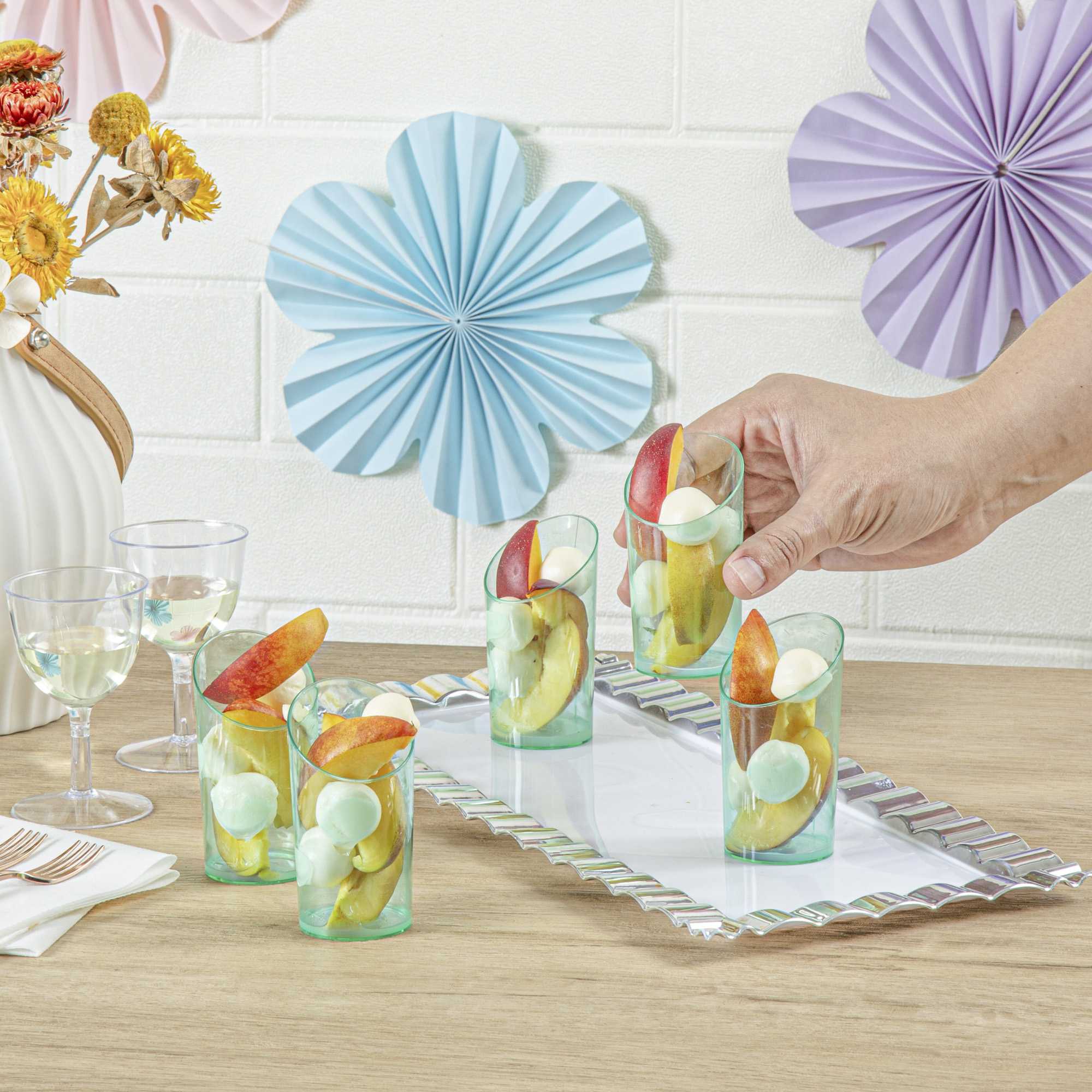 Elevate your drink presentations with our Mini Serve 3-Ounce Round Seagreen Incline Shot Glasses. Made from premium plastic, these shot glasses boast durability to endure lively festivities and lengthy evening gatherings. The distinct incline shape of these party glasses brings an immediate touch of refinement to your beverages, making them more captivating for your guests. Featuring a translucent seagreen finish, these plastic shot glasses showcase your colorful creations, amplifying the overall visual appeal. The disposable nature of these incline shot glasses simplifies post-event cleaning, ensuring you get to relish the party as much as your attendees. For added convenience in storage and transportation, these seagreen plastic shot glasses possess a stackable design, saving you space and effort. In spite of their sophisticated appearance, these disposable shot glasses are robust, with a capacity of 3 ounces for optimal servings. Measuring 2 inches in diameter by 3.25 inches in height, these recyclable plastic party glasses are perfect for various parties and occasions. Sold in a 100 count box.