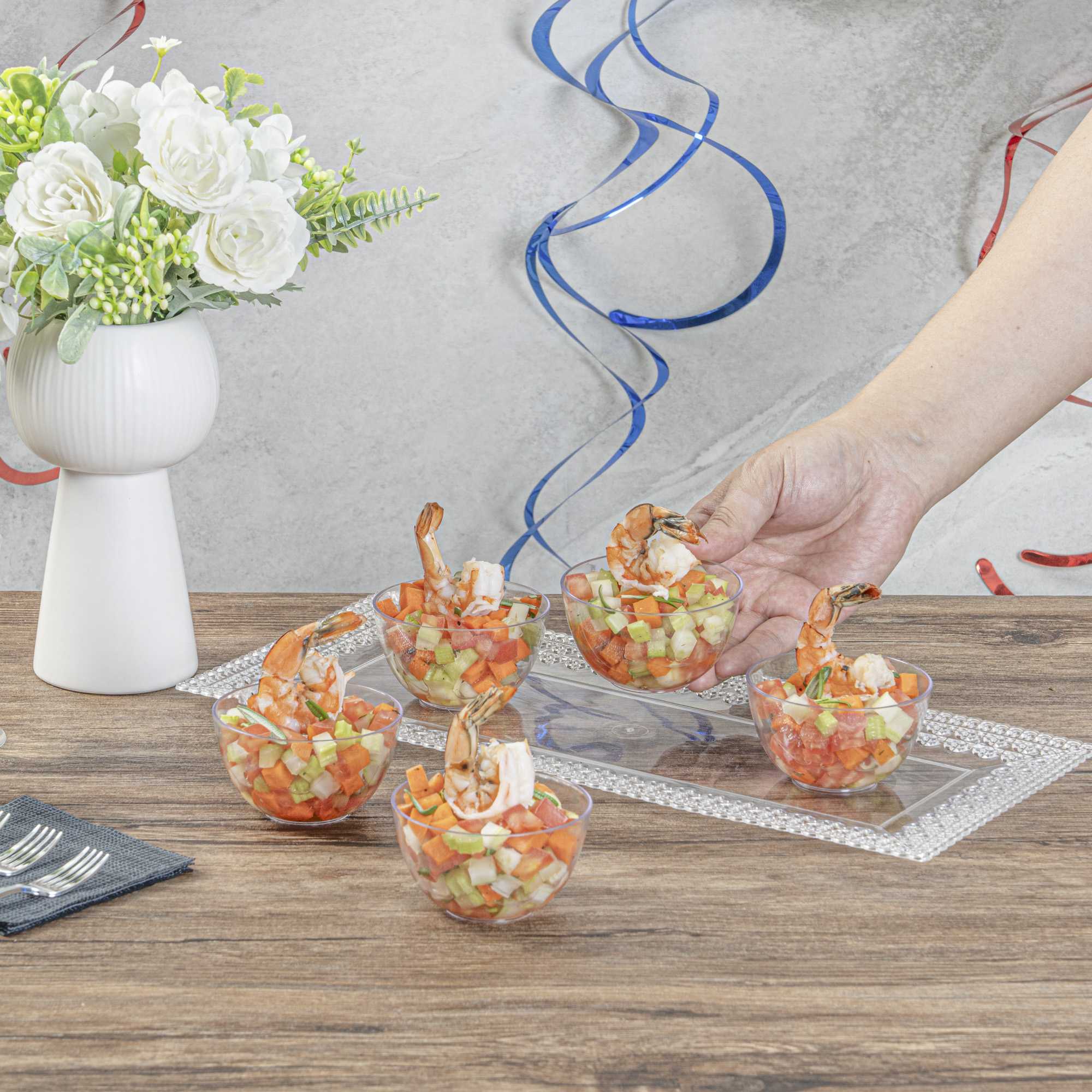 - 4-ounce capacity perfectly holds individual portions of appetizers and desserts