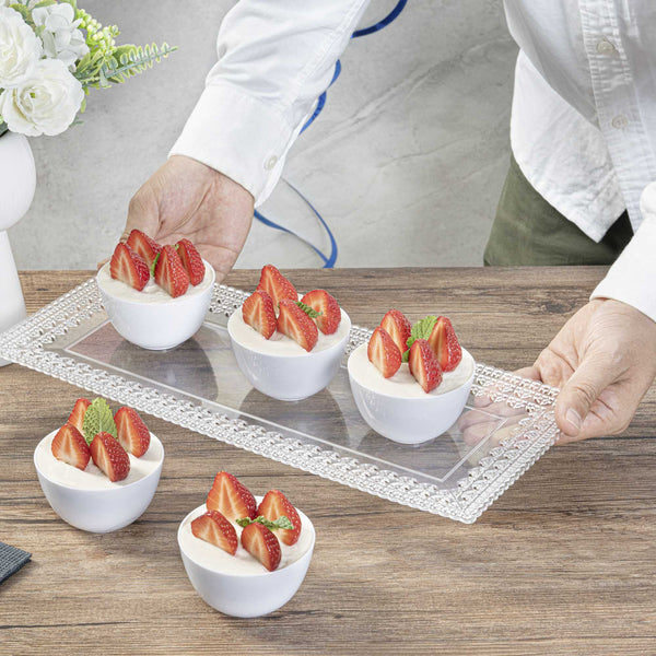- 4-ounce capacity perfectly holds individual portions of appetizers and desserts